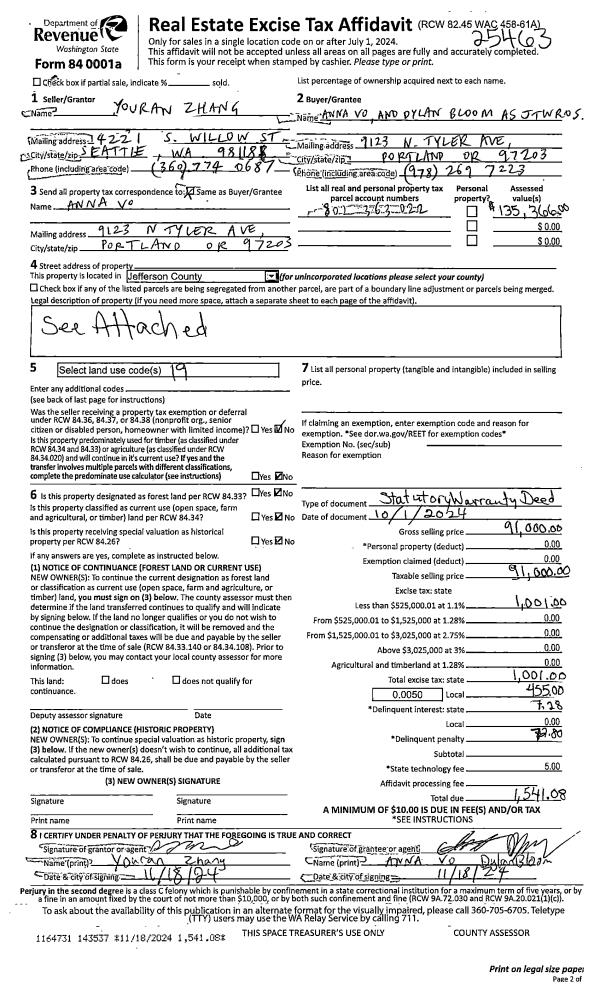 | 1 | 10/01/2024 | SWD | Statutory Warranty Deed | YOURAN ZHANG | ANNA VO | | | $91,000.00 | 143537 | |