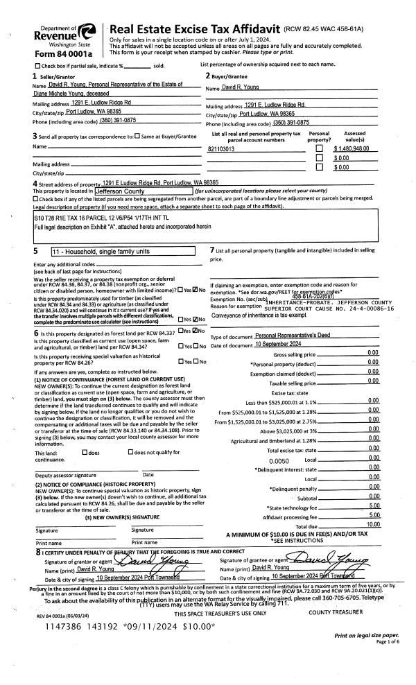 | 2 | 09/10/2024 | PRD | Personal Representatives Deed | DAVID R YOUNG PERSONAL REPRESENTATIVE | DAVID R YOUNG | | | | 143192 | |