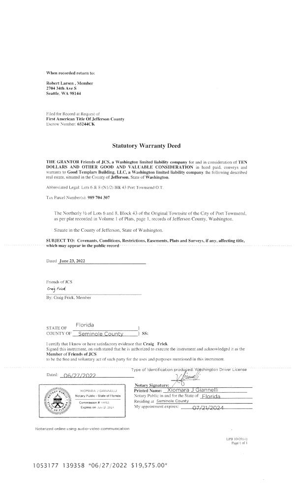 | Mailing Address: | DIANE E PETTIS 54 SHIP VIEW CT PORT LUDLOW, WA 98365-9557 | % Ownership: | 100.0000000000% |