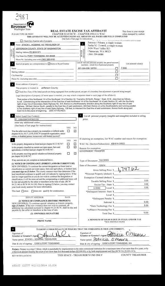 | 1 | 12/09/2014 | TXD | Tax Deed | JEFFERSON COUNTY | PATRICIA O'MEARA | | | $1,748.00 | 122377 | |