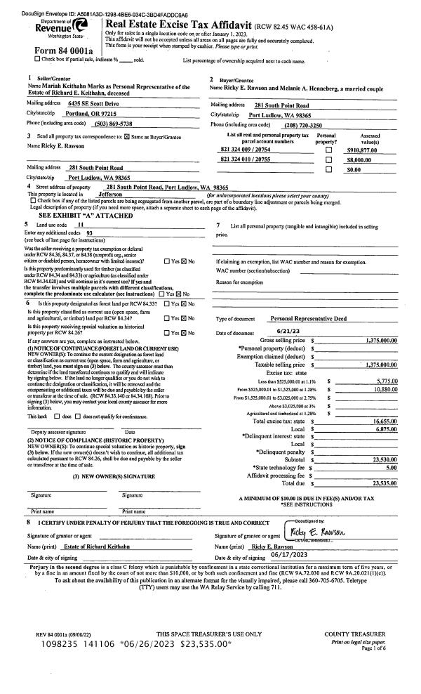 | 1 | 06/21/2023 | PRD | Personal Representatives Deed | RICHARD E KEITHAHN | RICKY E RAWSON | | | | 141106 | |