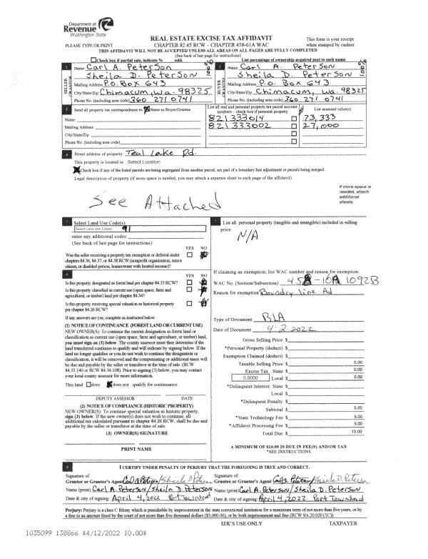 | 1 | 03/17/2021 | SWD | Statutory Warranty Deed | DEAN M REYNOLDS | CARL A PETERSON | | | $115,000.00 | 136348 | |