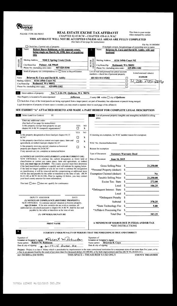 | 1 | 08/21/2015 | SWD | Statutory Warranty Deed | STEVEN G METCALF | RONALD D & MARCIA M HILDEBRANDT | | | $364,500.00 | 123862 | |