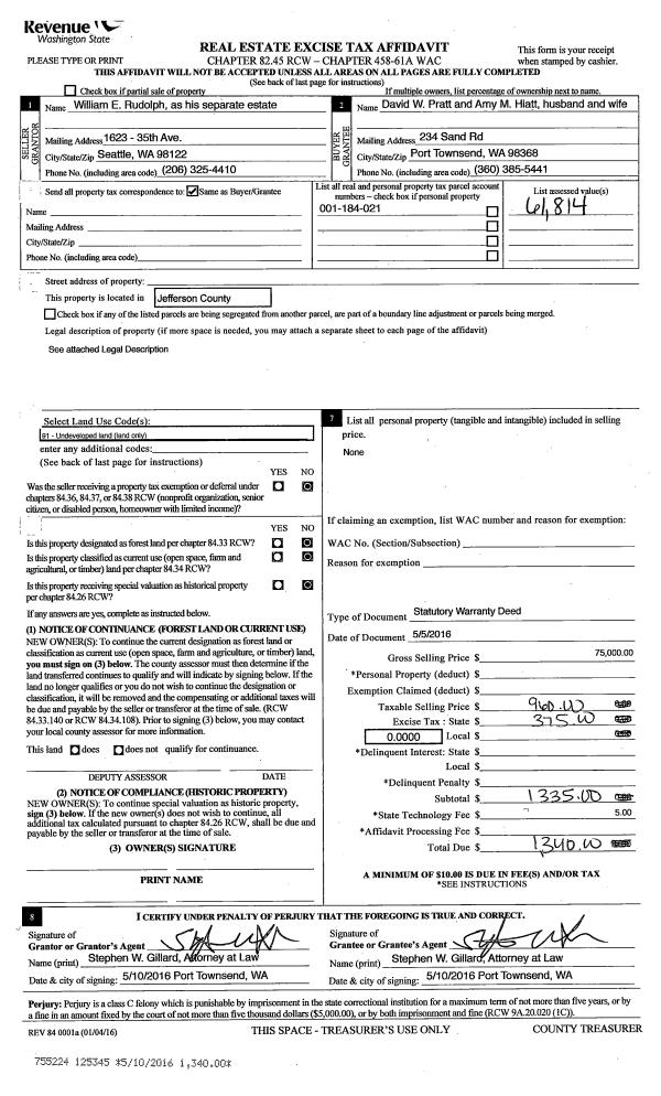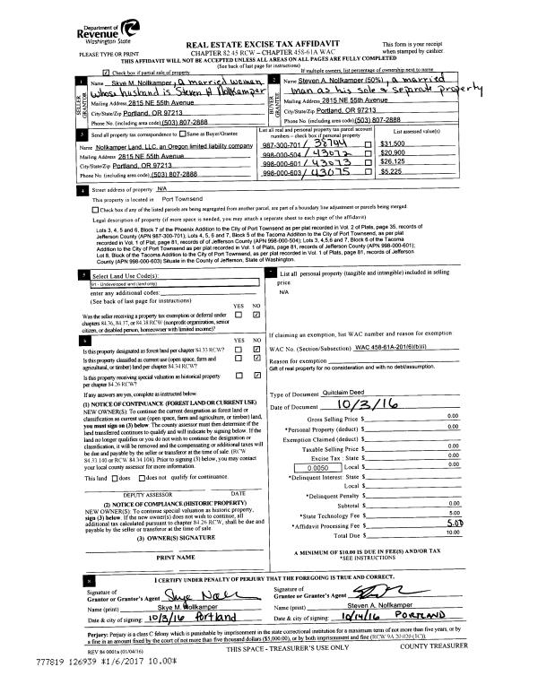 | Mailing Address: | 10 GARTEN RD PORT LUDLOW, WA 98365 | % Ownership: | 100.0000000000% |