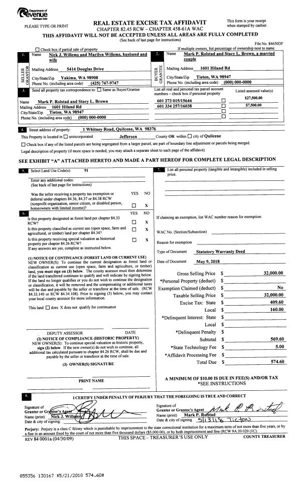 | 6 | 09/27/2018 | SWD | Statutory Warranty Deed | JERRY L JOHNSON | ELIZA OLYMPIA | | | $142,000.00 | 131105 | |