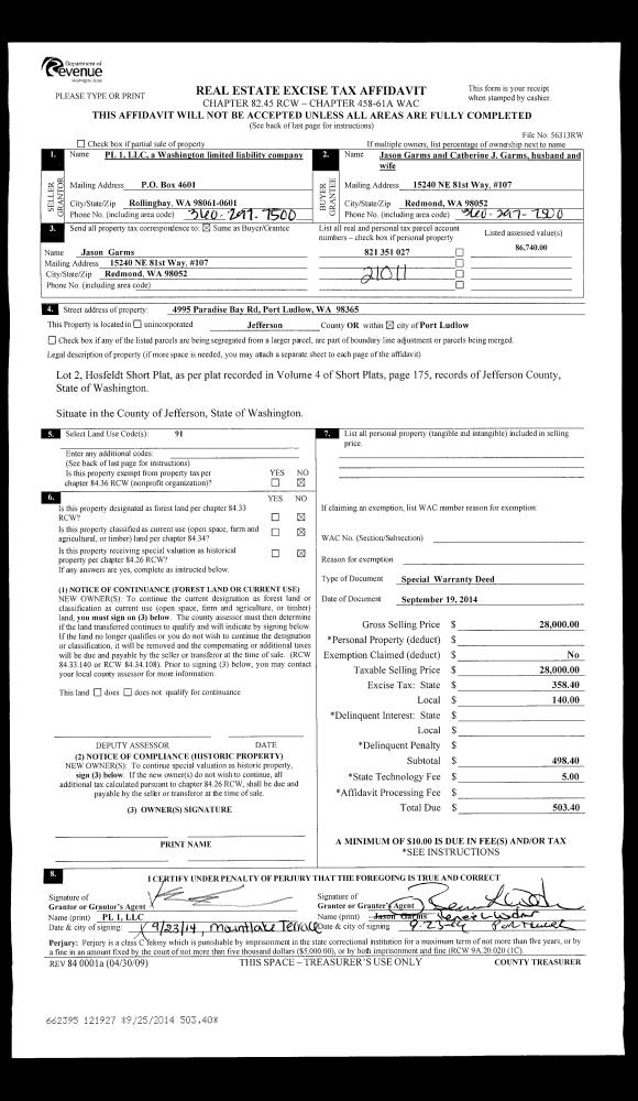| 2 | 09/19/2014 | SPWD | Special Warranty Deed | PL 1 LLC | JASON & CATHERINE GARMS | | | $28,000.00 | 121927 | |