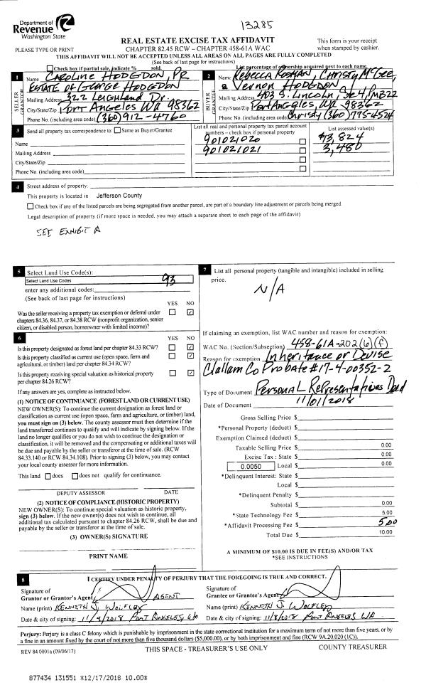 | 2 | 11/01/2018 | PRD | Personal Representatives Deed | GEORGE HODGDON | REBECCA ROSMAN | | | | 131551 | |