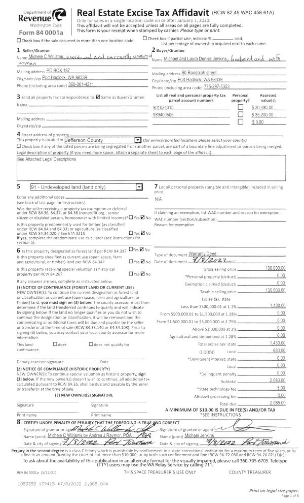 | 1 | 07/08/2022 | WD | Warranty Deed | MICHELLE C WILLIAMS | MICHAEL & LAURA JENKINS | | | $130,000.00 | 139415 | |