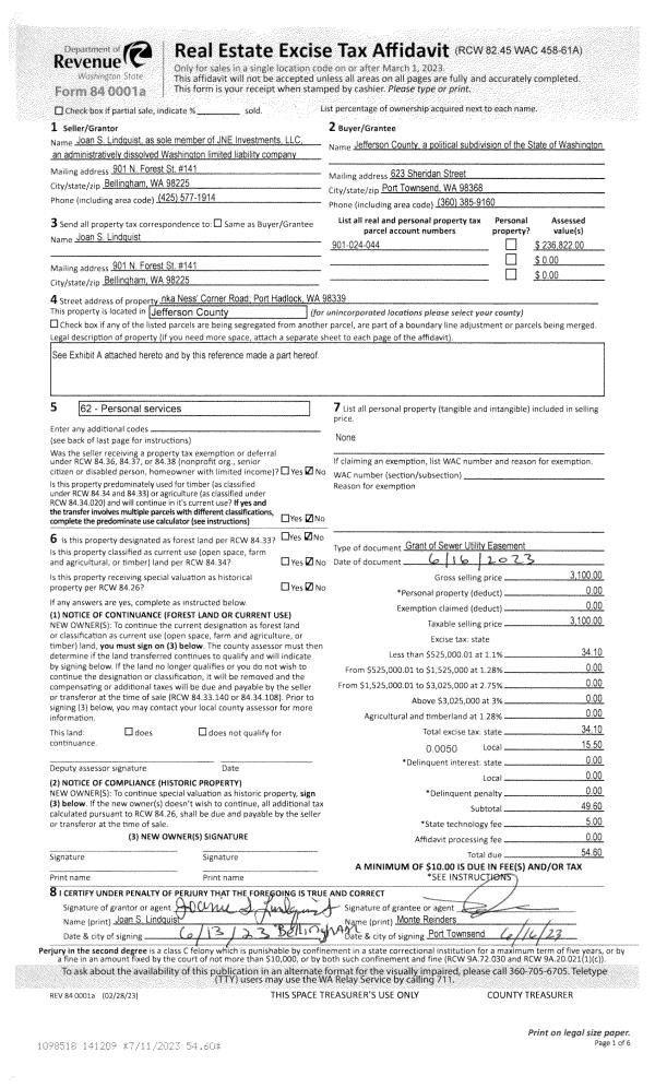 | 2 | 06/16/2023 | EASE | Assignment of Easement | JNE INVESTMENTS LLC | JEFFERSON COUNTY | | | $3,100.00 | 141209 | SEW/UTIL EASE |