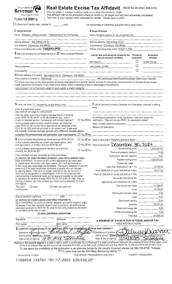 | 1 | 12/30/2024 | SWD | Statutory Warranty Deed | RICHARD L & SHANNON M GIFFORD TRUST | RICHARD LUKENS III | | | $1,229,000.00 | 143761 | |