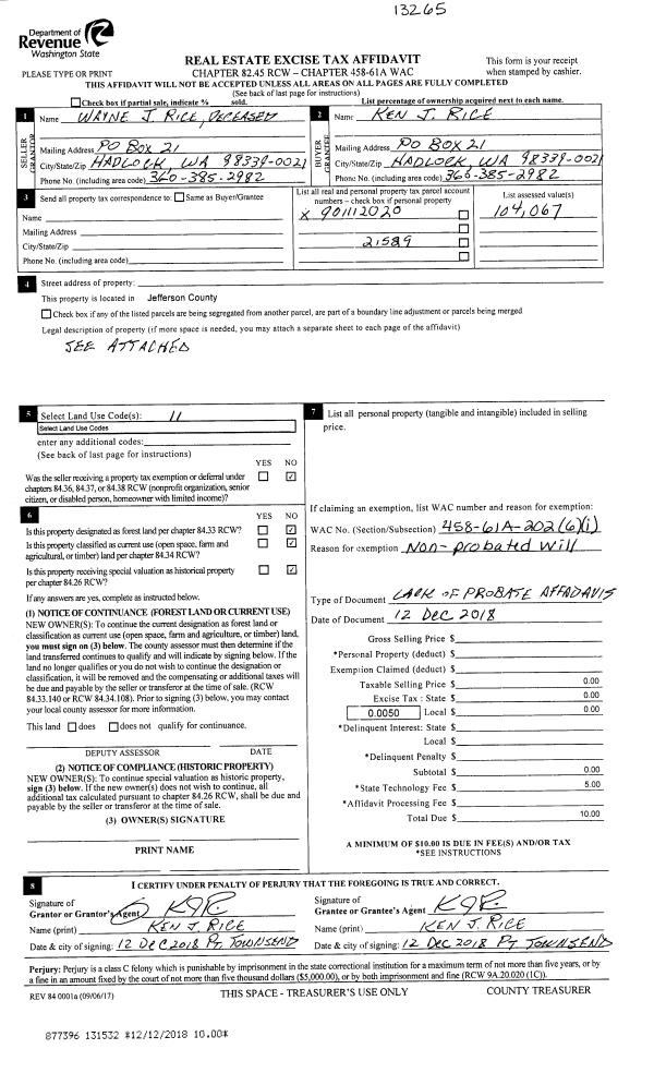 | 1 | 12/12/2018 | LOP | Lack of Probate | WAYNE J RICE | KEN J RICE | | | | 131532 | |