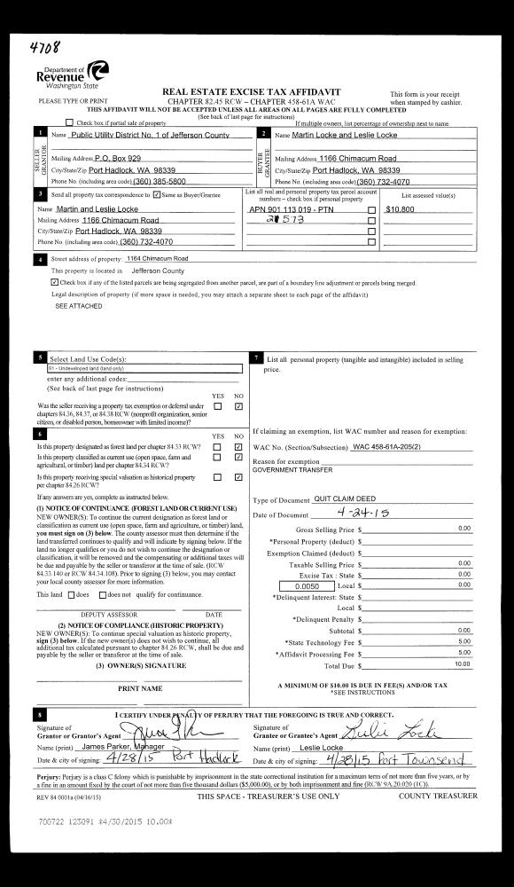 | Mailing Address: | LESLIE LOCKE 1166 CHIMACUM RD PORT HADLOCK, WA 98339-9715 | % Ownership: | 100.0000000000% |