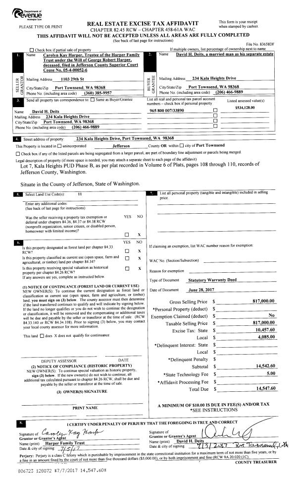 | Mailing Address: | MARY LOU OLSON TRUSTEE H & ML OLSON LIVING TRUST 881 CENTER RD CHIMACUM, WA 98325-9710 | % Ownership: | 100.0000000000% |