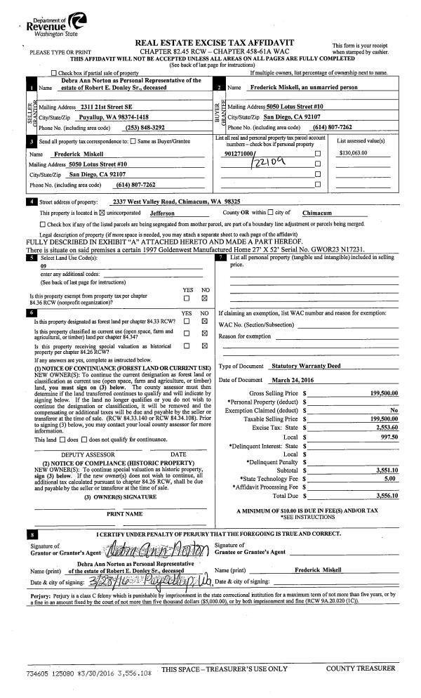 | 2 | 09/01/2023 | SWD | Statutory Warranty Deed | ROGER DEAN SHORT | PORT OF PORT TOWNSEND | | | $1,400,000.00 | 141499 | |