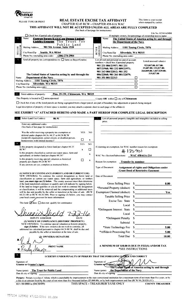 | 4 | 07/18/2016 | CONS EASE | CONSERVATION EASEMENT | | UNITED STATES OF AMERICA | | | | 125902 | |