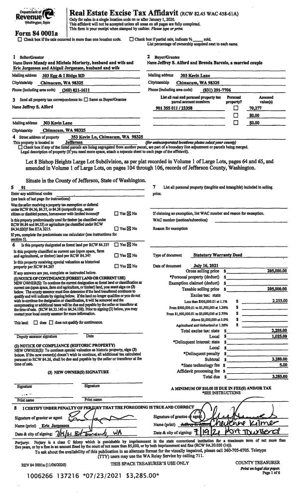 | 3 | 07/16/2021 | SWD | Statutory Warranty Deed | DAVE MUNDY | JEFFREY S ALFORD & BRENDA BARCELO | | | $205,000.00 | 137216 | |