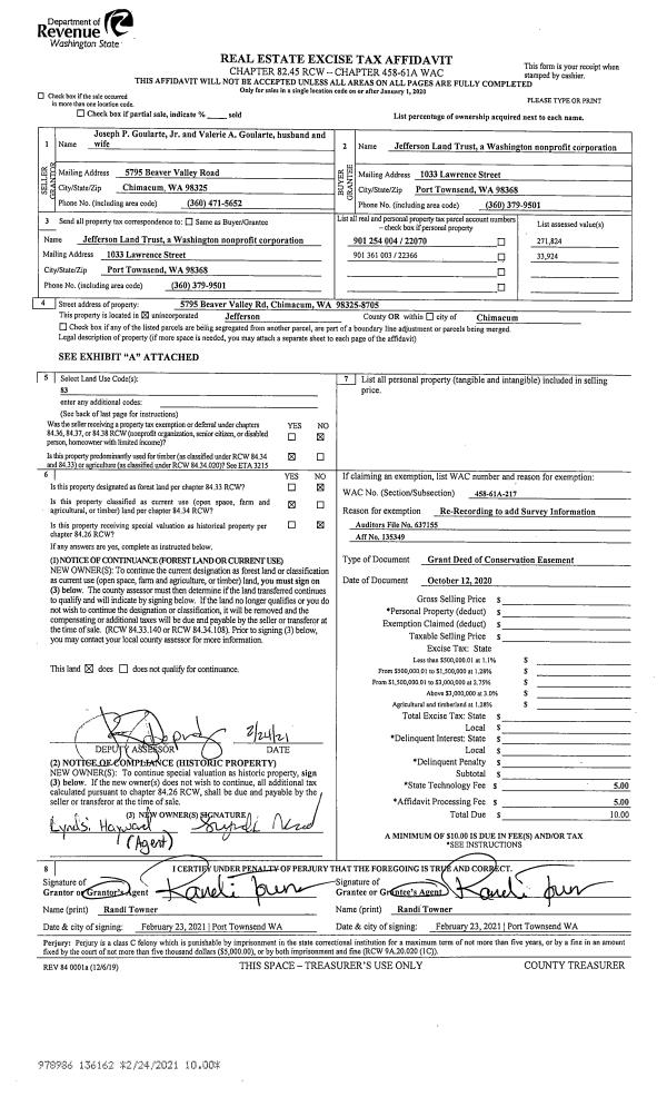 | Mailing Address: | VALERIE A GOULARTE 5795 BEAVER VALLEY RD CHIMACUM, WA 98325-8705 | % Ownership: | 100.0000000000% |