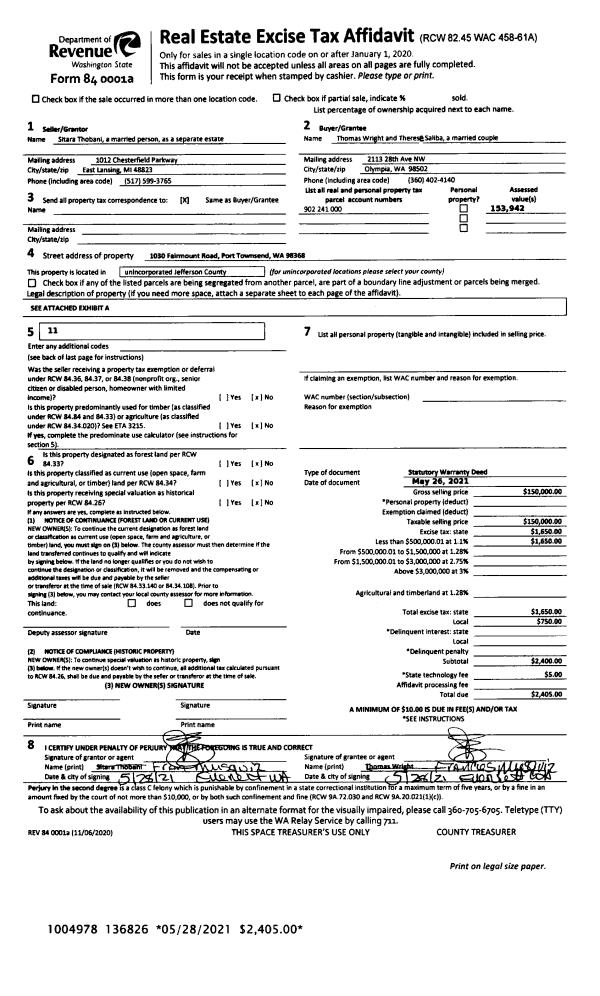 | 1 | 05/26/2021 | SWD | Statutory Warranty Deed | SITARA THOBANI | THOMAS WRIGHT & THERESE SALIBA | | | $150,000.00 | 136826 | |