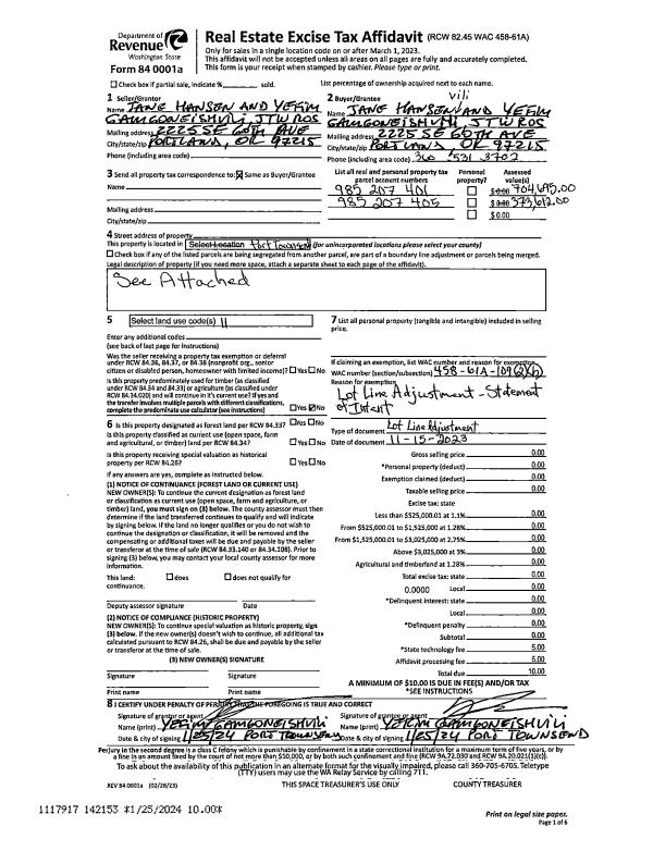 | 2 | 01/07/2005 | REC | Real Estate Contract | JOHNSTON, STAN/CANDY | CONNOLLY, GERRY | 0 | 0 | $0.00 | 102850 | 0 |