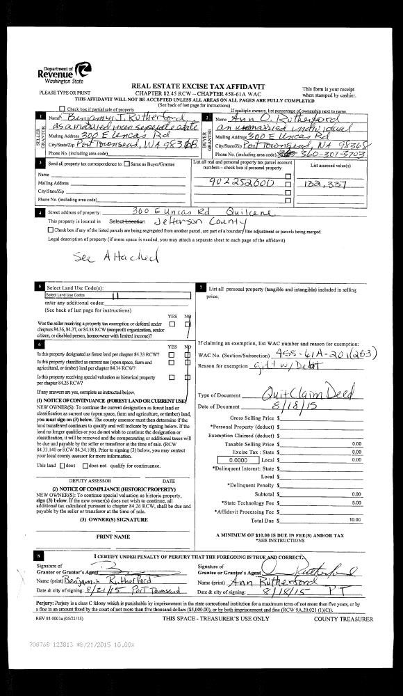 | Mailing Address: | ANN OCTAVIA RUTHERFORD TRUSTEE 300 E UNCAS RD PORT TOWNSEND, WA 98368 | % Ownership: | 100.0000000000% |