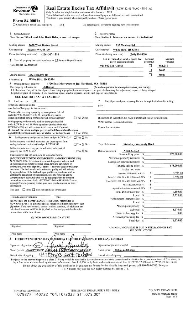| 1 | 04/03/2023 | SWD | Statutory Warranty Deed | SUSAN TILLACK & JOHN B BABA | ROBIN A JOHNSON | | | $675,000.00 | 140722 | |