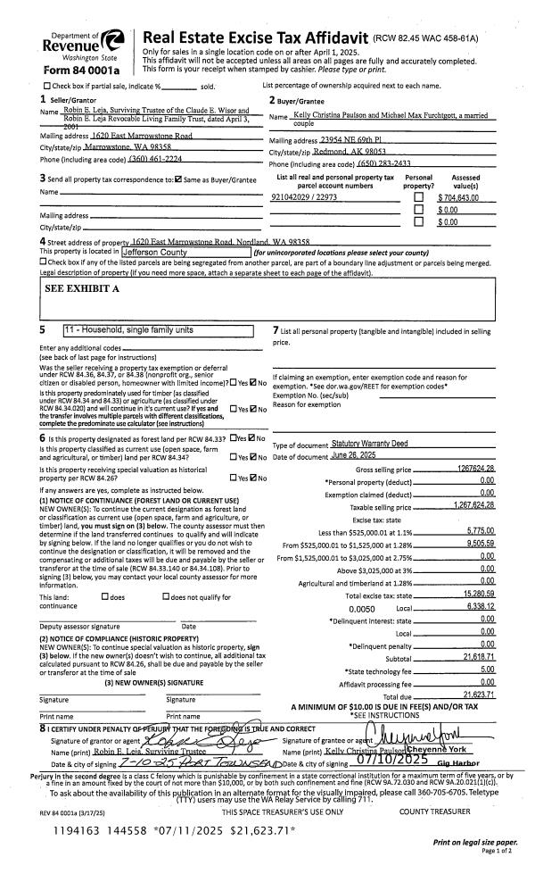 | 1 | 06/26/2025 | SWD | Statutory Warranty Deed | CLAUDE WISOR & ROBIN LEJA REVOCABLE LIVING TRUST | KELLY C PAULSON & | | | $1,267,624.00 | 144558 | |