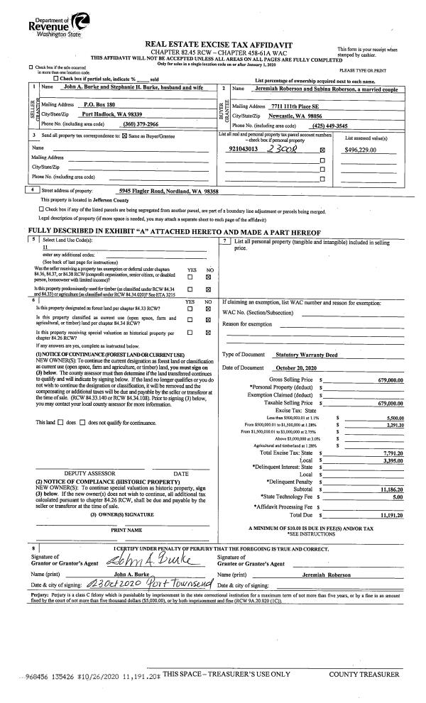 | 1 | 10/20/2020 | SWD | Statutory Warranty Deed | JOHN BURKE | JEREMIAH& SABINA ROBERSON | | | $679,000.00 | 135426 | |