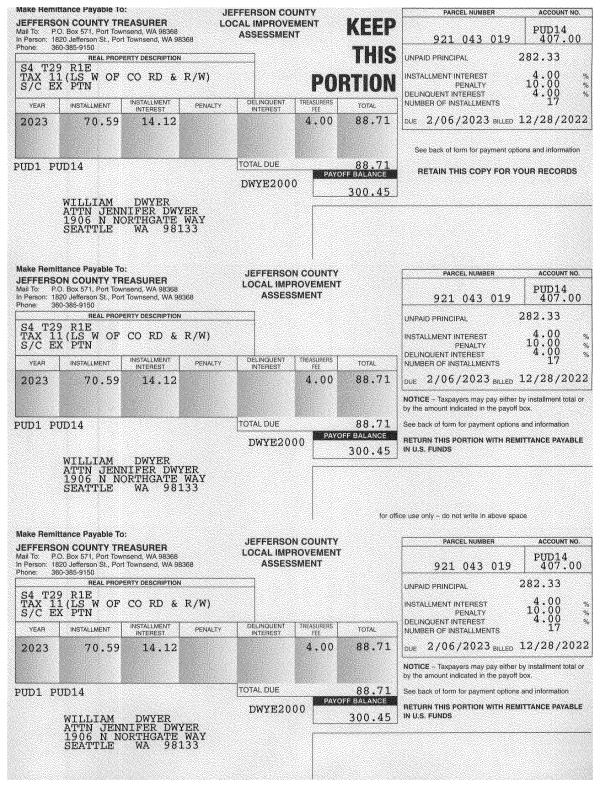 | 2023 | 12534 | PORTPT - PORT DISTRICT | $6.71 | $6.69 | $0.00 | $0.00 | $13.40 | $0.00 |
