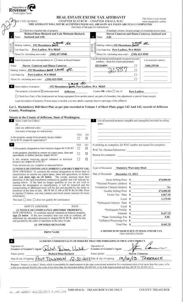 | 1 | 04/24/2015 | SWD | Statutory Warranty Deed | JUANA TINGDALE | JEAN GRONDAHL | | | $21,500.00 | 123095 | |