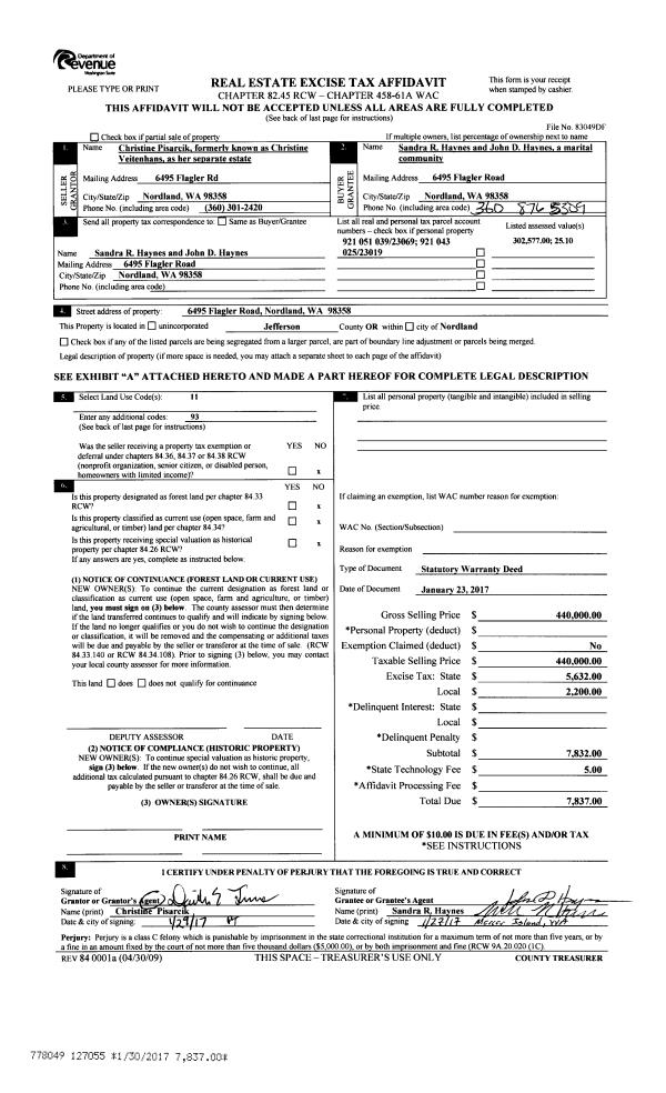 | 1 | 01/23/2017 | SWD | Statutory Warranty Deed | CHRISTINE PISARCIK | SANDRA R & JOHN D HAYNES | | | $440,000.00 | 127055 | |