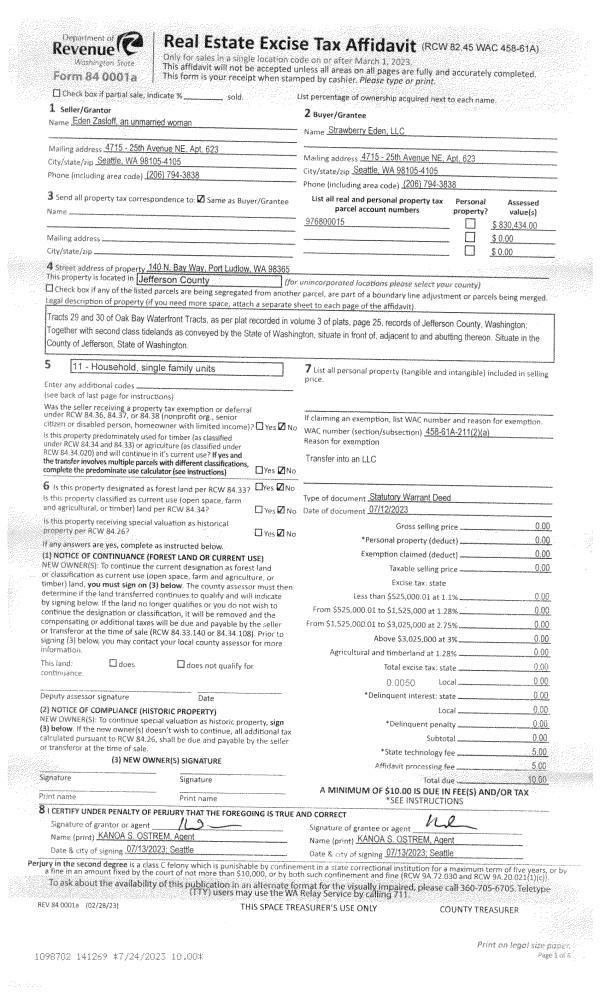 | Mailing Address: | GARRON J PETRICK JR PO BOX 900 PORT HADLOCK, WA 98339-0900 | % Ownership: | 100.0000000000% |