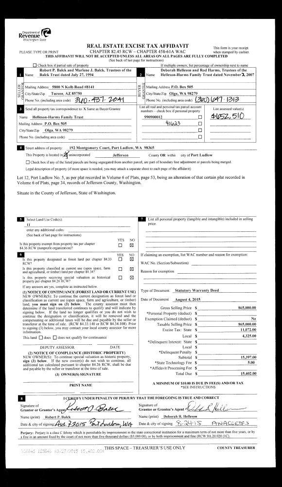 | 3 | 11/16/2015 | QCD | Quit Claim Deed | OAK BAY HIDEAWAY LLC | SANDRA D GITT | | | | 124396 | |