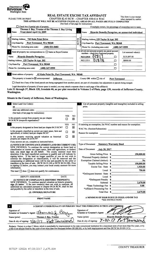 | 1 | 08/30/2017 | SWD | Statutory Warranty Deed | SANDRA D GITT | RAUL & SONIA GARCIA | | | $470,000.00 | 128481 | |