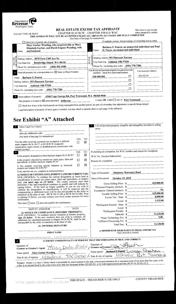 | 2 | 10/19/2015 | SWD | Statutory Warranty Deed | MARY E GERBER | BARBARA S FAUROT | | | $625,000.00 | 124258 | |