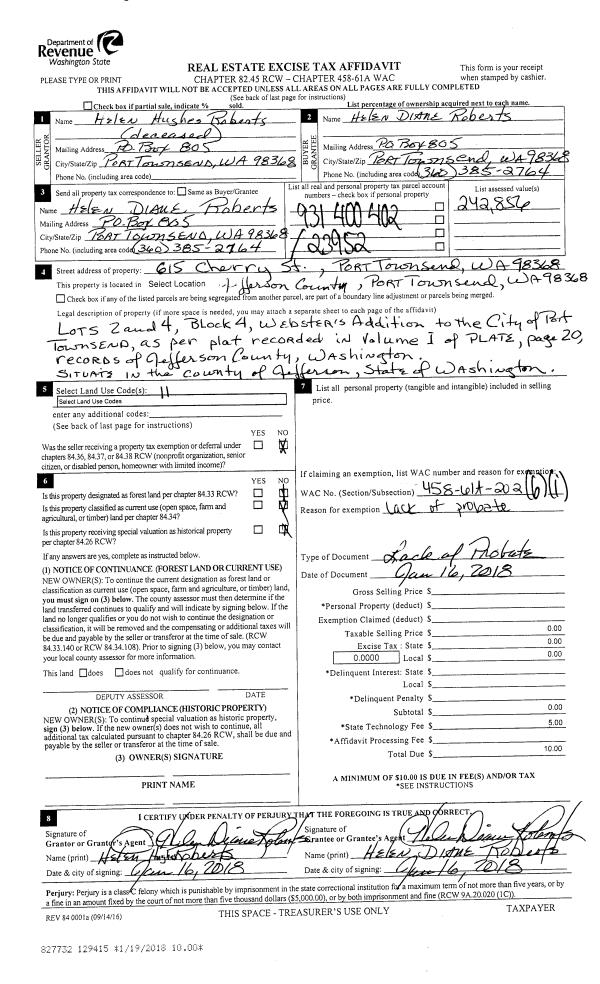 | Mailing Address: | 615 CHERRY ST PORT TOWNSEND, WA 98368-6310 | % Ownership: | 100.0000000000% |