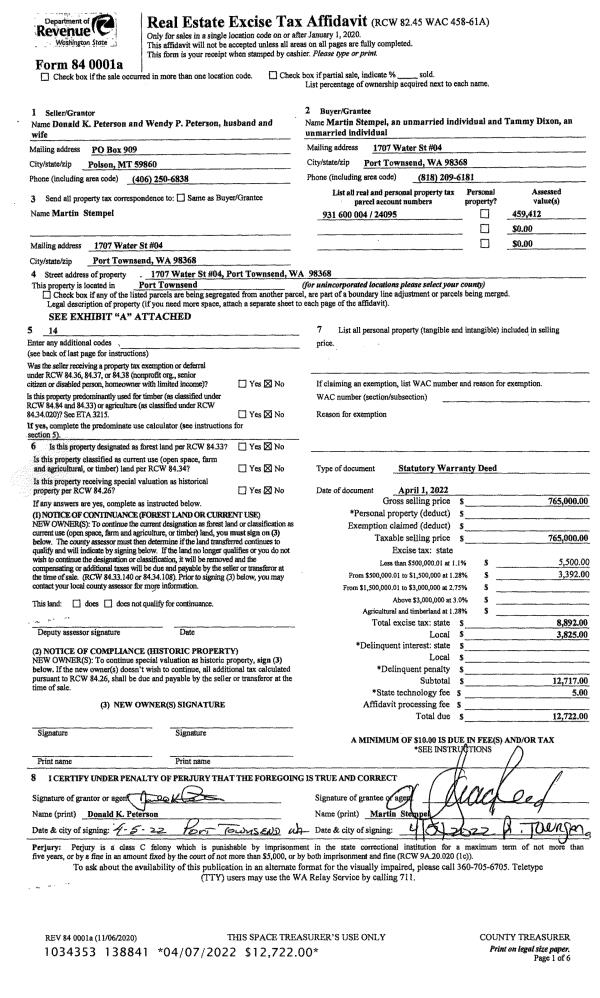 | 2 | 04/01/2022 | SWD | Statutory Warranty Deed | DONALD K & WENDY P PETERSON | MARTIN STEMPEL | | | $765,000.00 | 138841 | |