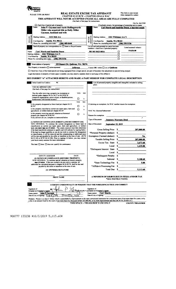 | Mailing Address: | 2330 SHERIDAN ST PORT TOWNSEND, WA 98368-7106 | % Ownership: | 100.0000000000% |