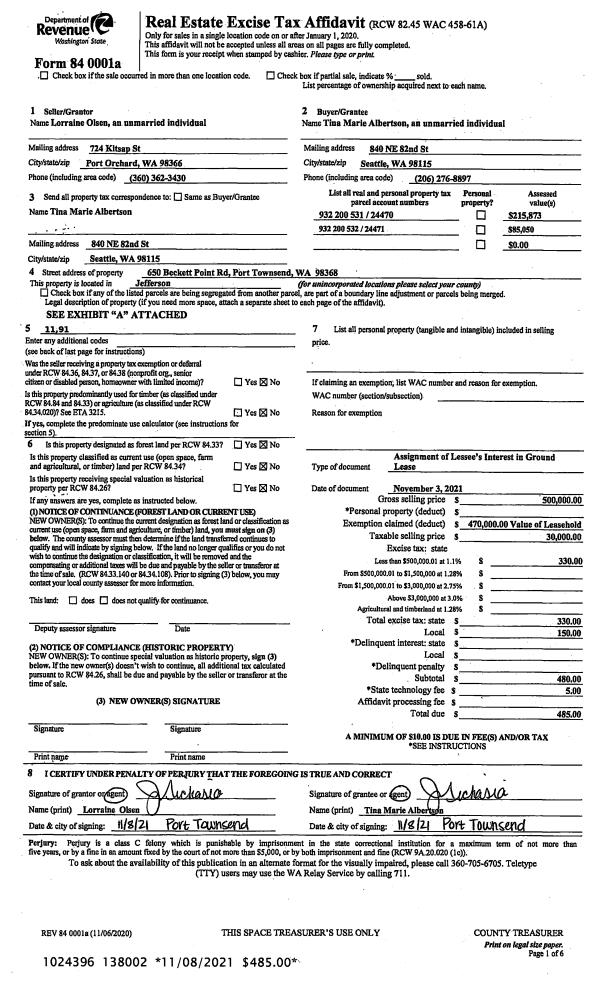 | 1 | 11/03/2021 | LEASE | Lease or Assignment of Lease | LORRAINE M OLSEN | TINA M ALBERTSON | | | $500,000.00 | 138002 | |