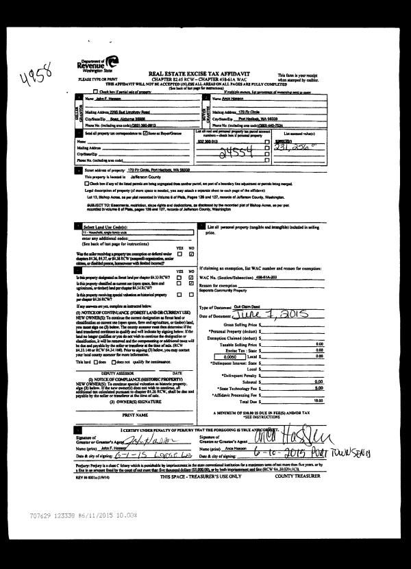 | Mailing Address: | 170 FIR CIRCLE PORT HADLOCK, WA 98339-9592 | % Ownership: | 100.0000000000% |