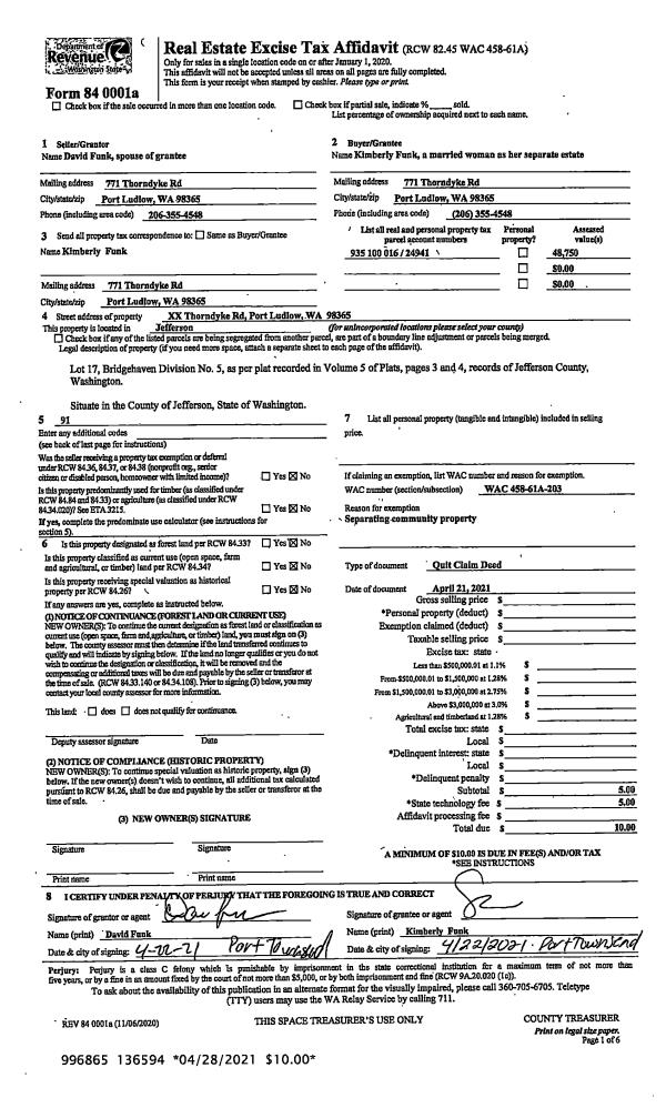 | 2 | 04/21/2021 | QCD | Quit Claim Deed | DAVID FUNK | KIMBERLY FUNK | | | | 136594 | |