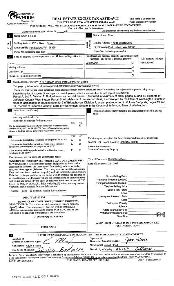 | 1 | 02/18/2019 | QCD | Quit Claim Deed | JOAN I FLOOD | | | | | 131829 | |