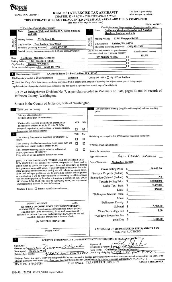 | 1 | 09/19/2018 | SWD | Statutory Warranty Deed | DUANE A WELLS | GUILLERMO MENDOZA GONZALES & ANGELINA MENDOZA | | | $190,000.00 | 131034 | |