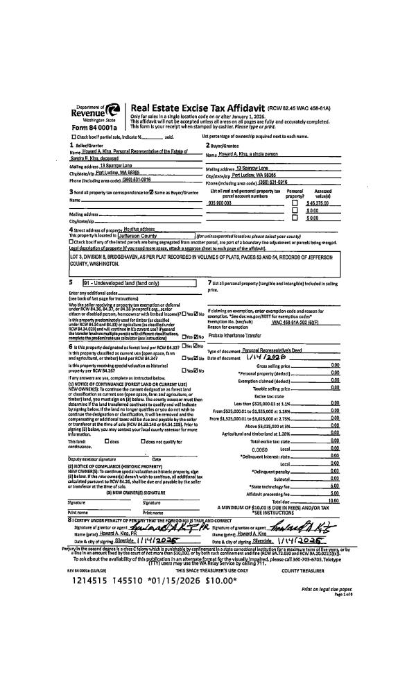 | 1 | 01/14/2026 | PRD | Personal Representatives Deed | SANDRA KING ESTATE | HOWARD A KING | | | | 145509 | |