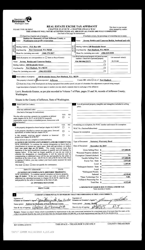 | 1 | 12/18/2015 | SWD | Statutory Warranty Deed | HABITAT FOR HUMANITY OF EAST | JEREMY & CAMERON BOTKIN | | | $237,000.00 | 124555 | |