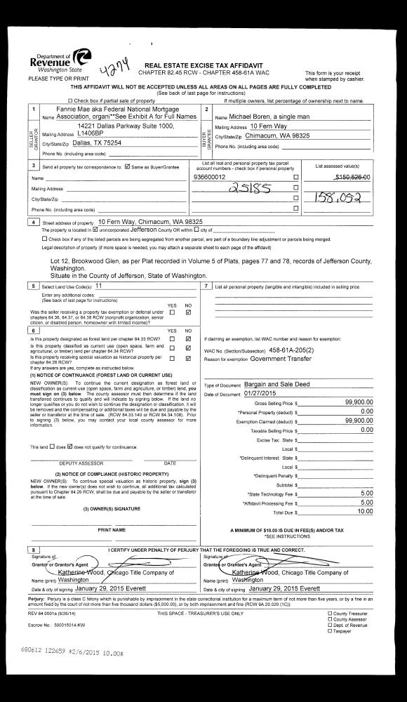 | 1 | 01/27/2015 | BSD | Bargain and Sale Deed | FEDERAL NATIONAL MORTGAGE ASSOCIATION | MICHAEL BOREN | | | $99,900.00 | 122659 | |