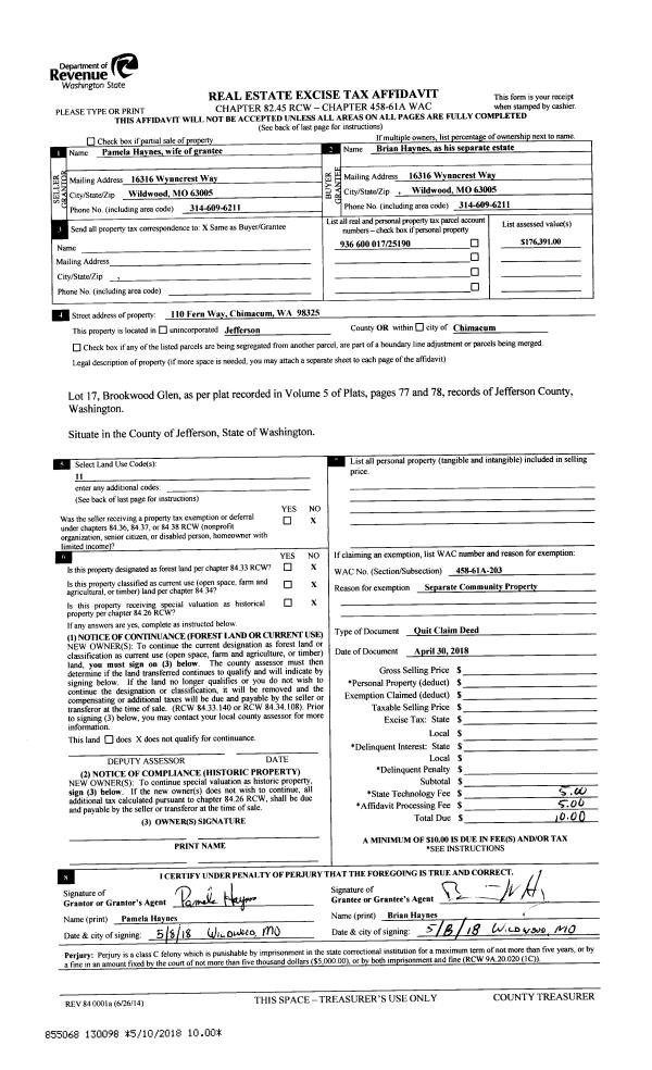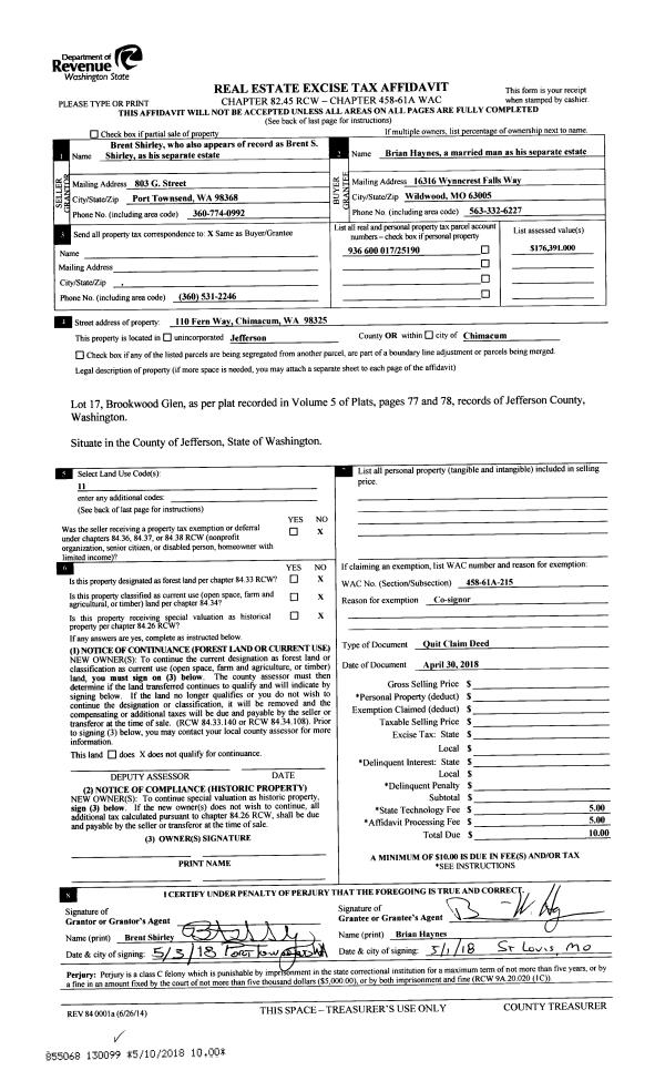 | 3 | 04/30/2018 | QCD | Quit Claim Deed | | | | | | 130098 | |