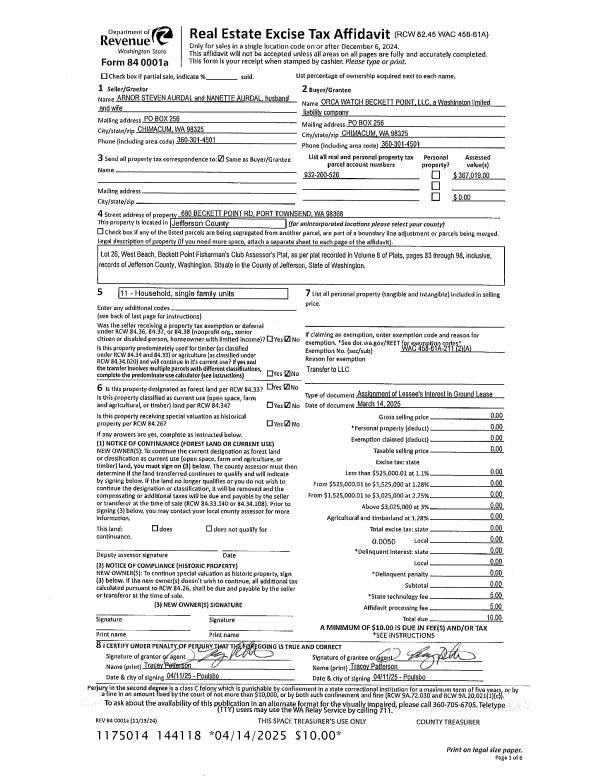 | Mailing Address: | 5528 KUHN ST PORT TOWNSEND, WA 98368 | % Ownership: | 100.0000000000% |