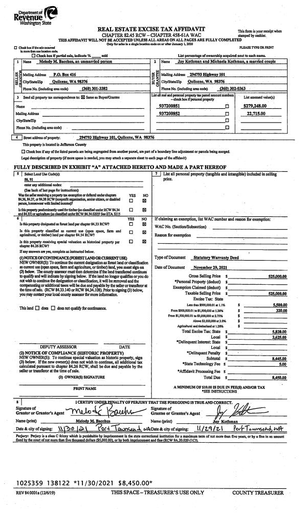 | 1 | 11/29/2021 | SWD | Statutory Warranty Deed | MELODY M BACCHUS | JAY & MICHAELA KOTHMAN | | | $525,000.00 | 138122 | |