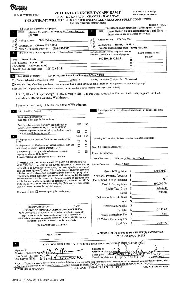 | 3 | 06/07/2019 | SWD | Statutory Warranty Deed | MICHAEL M GROVE | MARC PAPAGEORGES | | | $190,000.00 | 132536 | |