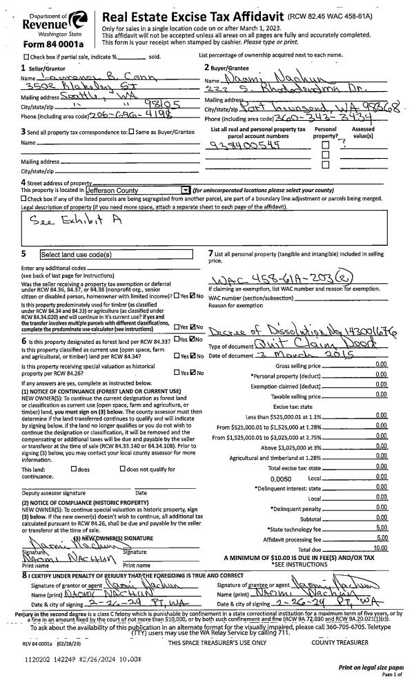 | Mailing Address: | 222 S RHODODENDRON DR PORT TOWNSEND, WA 98368-8901 | % Ownership: | 100.0000000000% |
